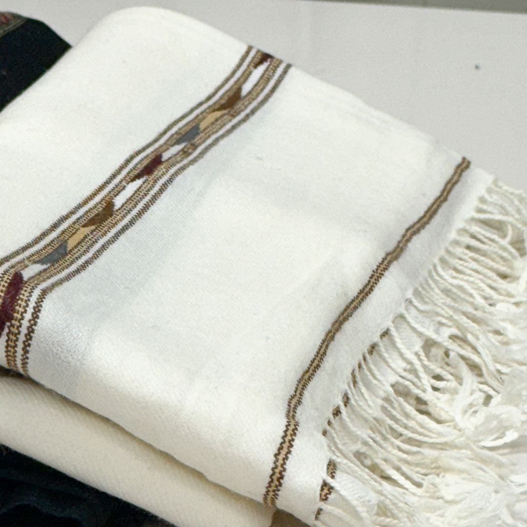 Elegant White Shawl with Fine Border – Soft, Cozy & Timeless Style